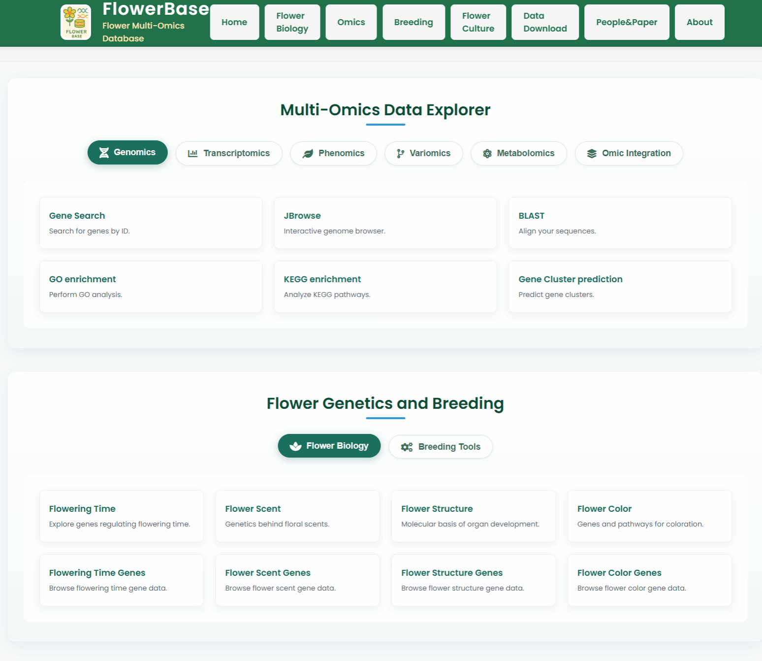 数据库链接://bioinformatics.soutongvideo.com/flowerbase